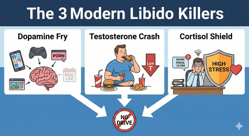 - The Result: Your body thinks you are in danger 24/7, so it turns off your libido to keep you safe.